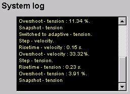 5. A snapshot of the tension or the velocity graph can be taken for a user defined period of time. The period may however not be greater than one full screen width (6.4 seconds) since no more values are buffered. This snapshot is presented on a seperate display as seen in the figure below.
